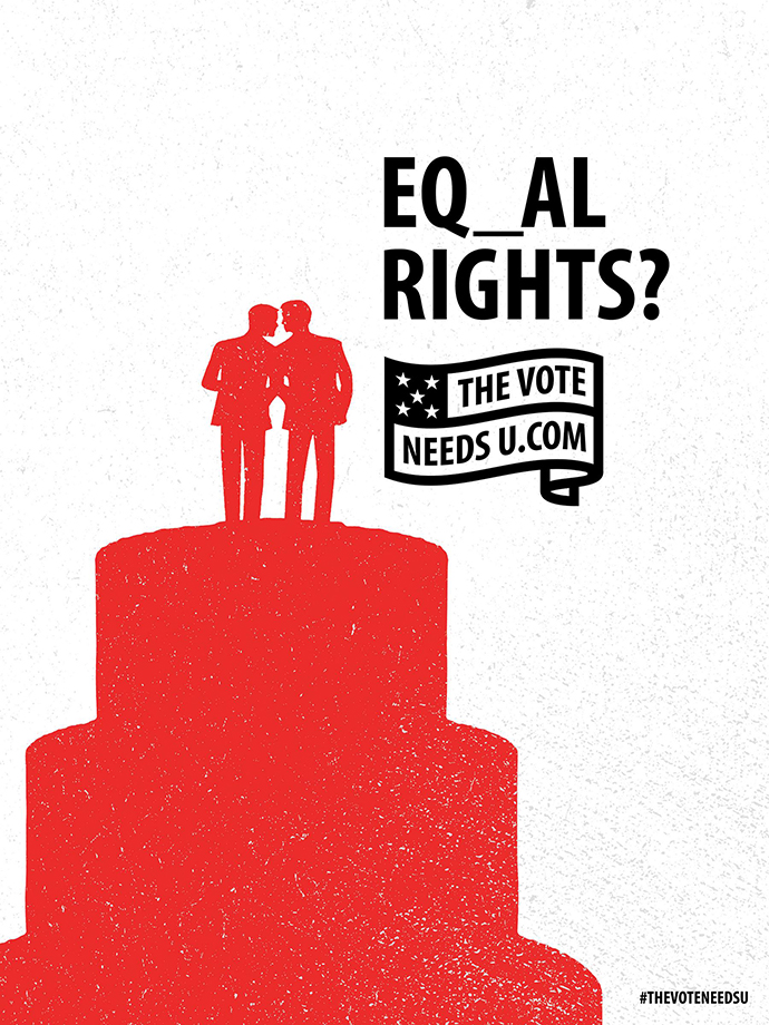 Aux dernières élections de mi-mandat, les États-Unis ont enregistré un taux de participation parmi les plus bas de leur histoire. 37 %. Un désintérêt manifeste des Américains qui inquiète pour ce vote pourtant crucial. Il décidera en effet dans quelques semaines de l’orientation des deux chambres. Alors pour mobiliser, l’agence Partners + Napier a tapé fort. Son parti pris ? Provoquer. En interpellant tout d’abord sur huit sujets de société brûlants comme l’égalité des droits pour les homosexuels, le contrôle des armes à feu, la légalisation de la marijuana, le décret anti-migration… En interpellant ensuite par son idée publicitaire : retirer la lettre « U » de chacune des accroches centrées sur ces sujets fortement controversés. Le « U » pour « You ». Renforcé par la signature « The vote needs U » inscrit dans une stylisation du drapeau américain. Force et évidence du message renforcés par une facture créative manifestante. Illustrations noires pleines, codes coloriels tranchés autour du rouge, du noir et du blanc. Qui ne sont pas sans rappeler ceux de The Economist ou de l’Humanité. Bref, un appel à chacun à se lever. Et marcher jusqu’au bureau de vote. Exercer son droit fondamental et démocratique. Prendre sa place dans les mots. Dans le débat. Sous une Présidence conservatrice décriée qui clamait il y a peu « Keep America Great », c’est comme un appel. La révolution ? Yes, U can ?!