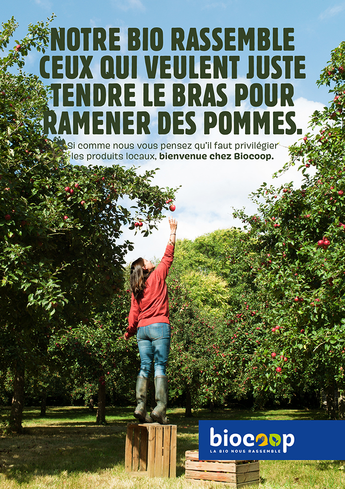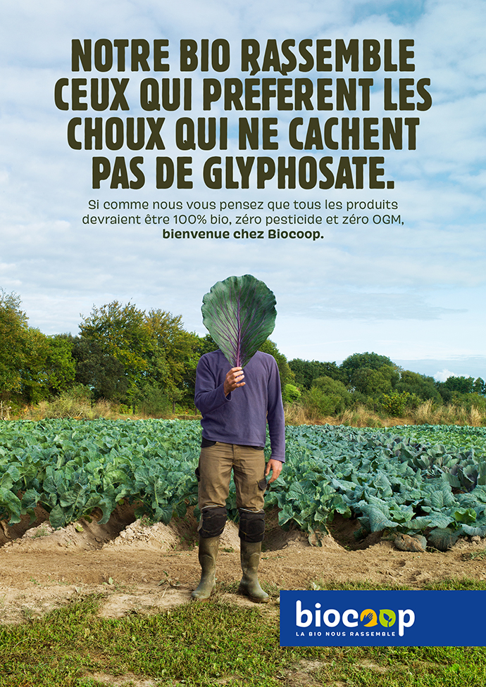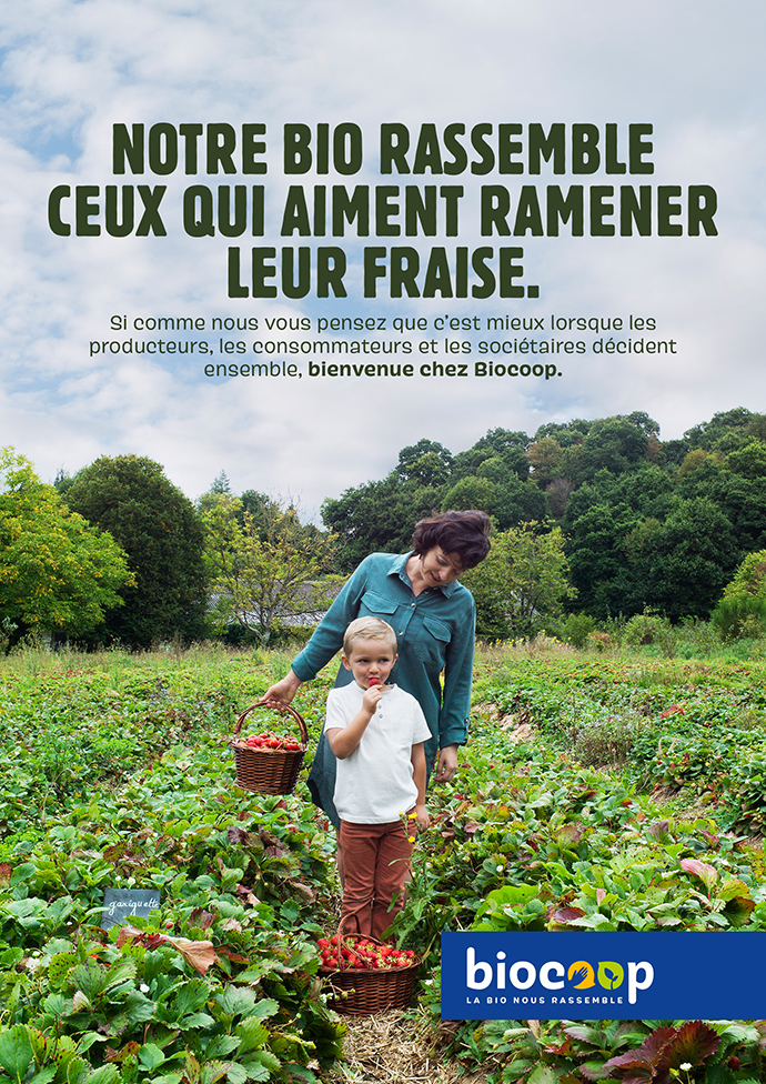 Le bio. C’est bien. C’est beau. Tout le monde le dit. Tout le monde s’y met. Une dernière étude épidémiologique annonce que l’alimentation bio réduirait de 25 % les risques de cancer. Alors, forcément, ça donne envie de surfer sur la vague bio. À commencer par la grande distribution… Même si c’est naturellement une bonne nouvelle que le bio entre dans l’ère de la consommation de masse, n’oublions pas les vrais, les purs. Les convaincus. Les résistants du maquis, euh, des salades, sans OGM ni pesticides. Ceux de la première heure. Il y a 30 ans. Ceux qui savaient que la culture intensive ne cultiverait rien de sain, de bien, de durable. Ceux qui dénonçaient le pouvoir de l’argent et de l’actionnariat. Ceux qui cherchaient à protéger la terre et ses producteurs. On parle de Biocoop, oui. Alors, forcément, ça les énerve de voir brandir par tous aujourd’hui l’étendard commercial du bio. C’est pourquoi ils signent avec Hungry and Foolish une campagne qui remet les pendules à l’heure. Et qui réaffirme leur position de pionnier. De ceux qui avaient une vision, largement partagée aujourd’hui. Un état d’esprit communautaire réactivé en entrée de chacune des annonces de la campagne par « « Si comme nous… » et qui ne fait que renforcer la nouvelle signature de marque, « La bio nous rassemble ». Et toc.