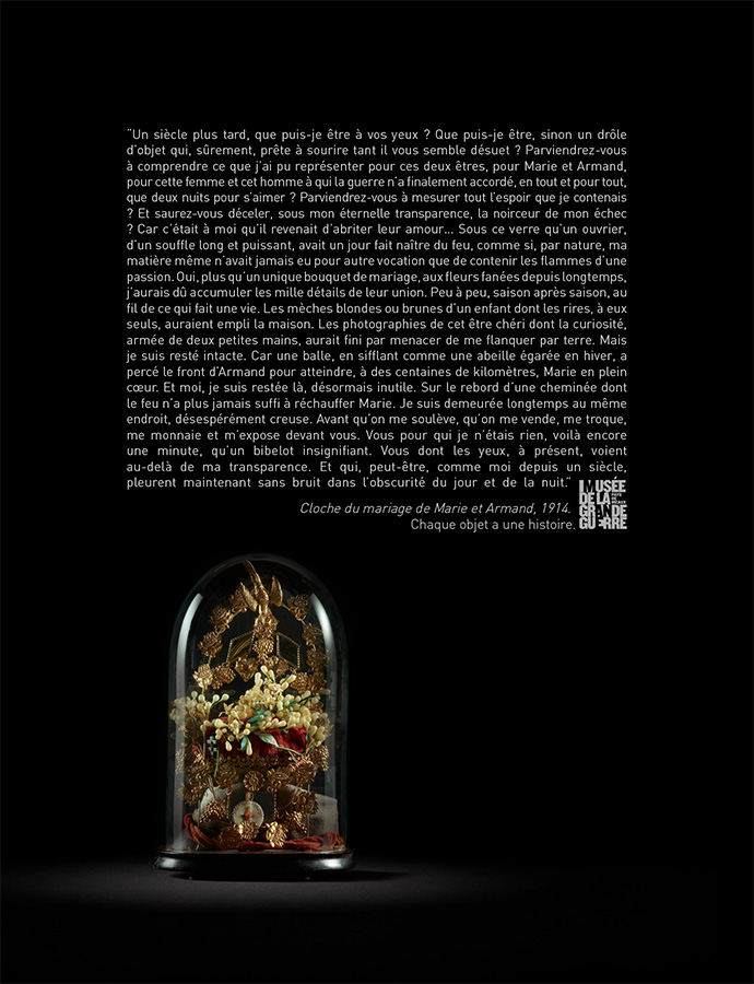 En 2011, le dernier homme ayant combattu lors de la Première Guerre mondiale est mort. Un an plus tard, c’était au tour de la dernière femme. Alors cette année, tandis que l’on célèbre le centenaire de la Der des Ders, plus personne n’est là pour en parler. Personne, vraiment ? Car en pleine page des journaux de 2018, un lit datant de 14-18 semble délier sa langue. Délivrer ses histoires. Libérer ses secrets. Ceux de Louise et Auguste, précisément. Amoureux à une époque où le temps n’était pas à la romance. Et où les événements politiques ont fait le lit de l’horreur. Sous la plume de DDB Paris, le Musée de la Grande Guerre a fait parler les objets. Témoins infatigables de l’Histoire qui s’écrit. Du temps qui file. Des gens qui passent. Au détour d’une campagne presse, de films et d’une installation en Gare de l’Est, le lit ne dit pourtant rien des tranchées. Des prisonniers. Du rationnement. Préférant témoigner de la séparation soudaine. Du matelas dont le moelleux n’a pas adouci la douleur de l’attente. De la mauvaise nouvelle qui a fini par arriver. Du côté de la couche qui restera éternellement vide. Une cloche de mariage et une besace de facteur ayant aussi uni leurs voix à celle du lit, on devine alors ce qu’il s’est joué dans les chambres à coucher. Les salons. Les cours des maisons. Par leur simple présence, ces objets du quotidien témoignent de la vie de nos aïeux. Émeuvent. Permettent de ne jamais oublier.