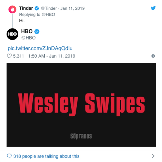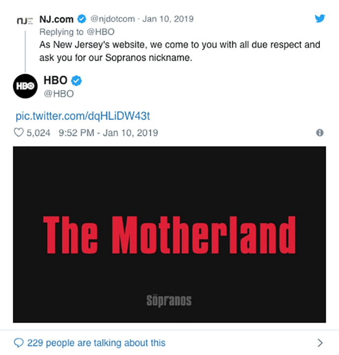 Pour les 20 ans des Sopranos, HBO a proposé la semaine dernière une opération digitale ludique : donner des surnoms aux accents de mafia italienne à ceux qui le souhaitaient. Journalistes, marques, célébrités… Tous se sont prêtés au jeu. Un joli coup de filet pour un happy birthday !