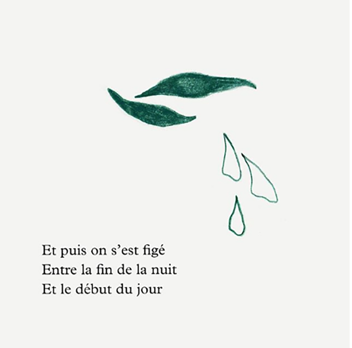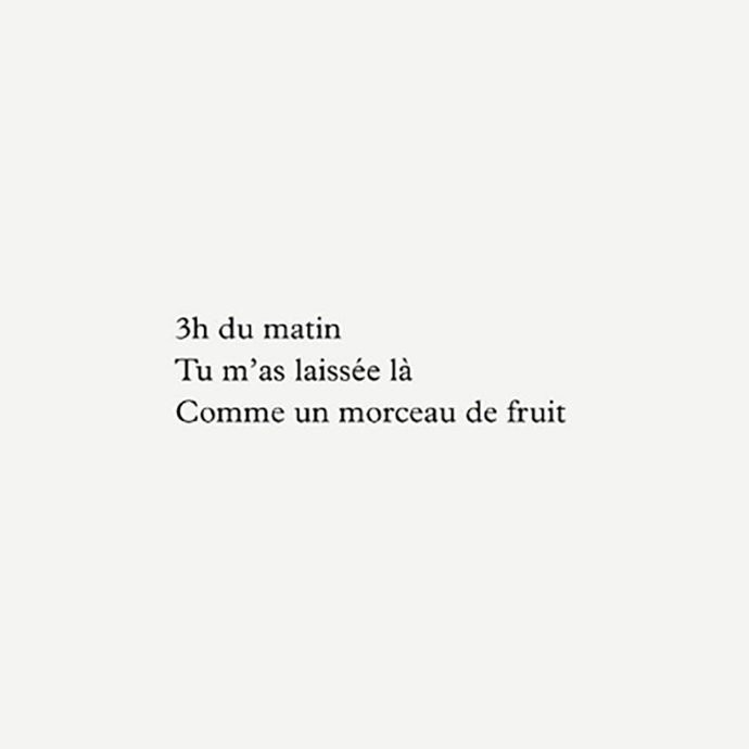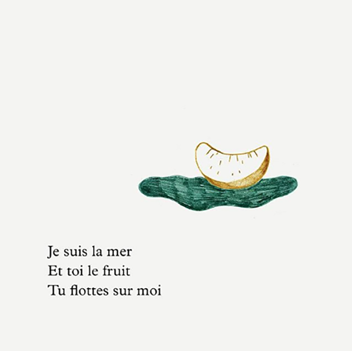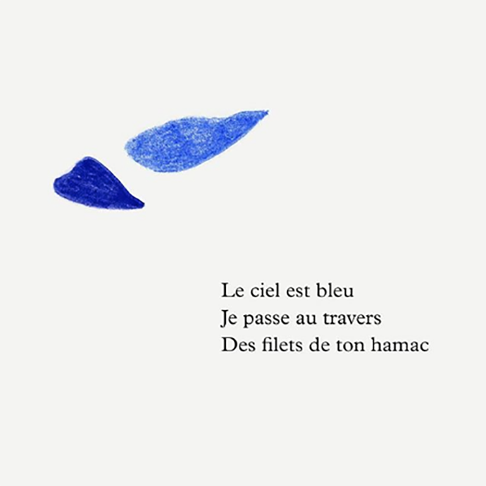 Les mots de Bleu Poire ressemblent à des haïkus. Fragmentés. Légers. En suspension. Ils racontent les états d'âme amoureux et parfois osés du quotidien. Ceux d'une rencontre inachevée. Ou d'un moment vécu mille fois. Et entre les mains de Clémence et Aline, les artistes à l'origine du projet, ils se laissent cueillir. Ensemble, elles livrent un univers onirique où chacun détient la clé d'une interprétation. Unique et libre.