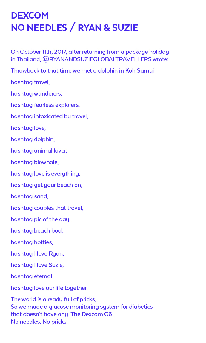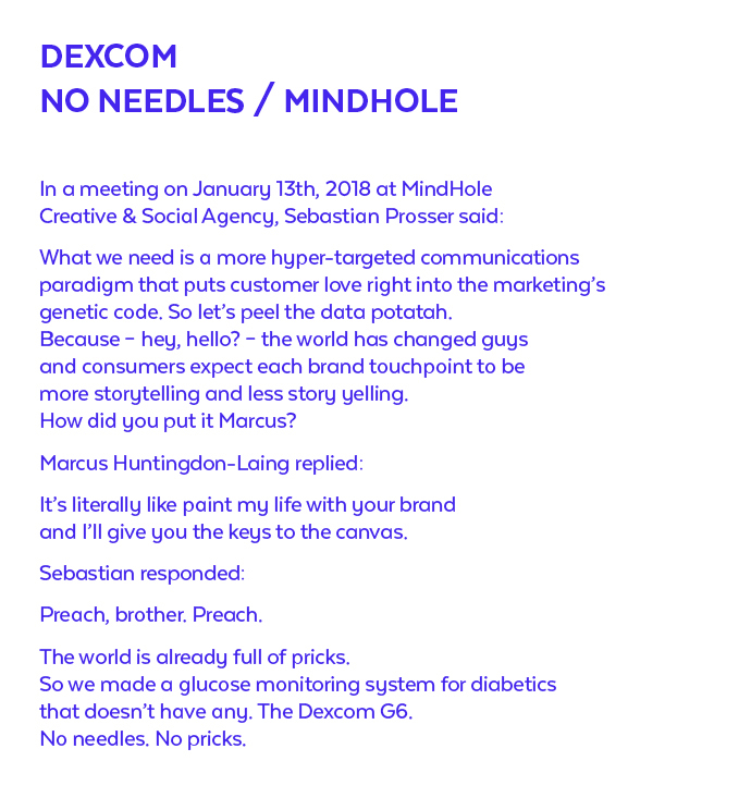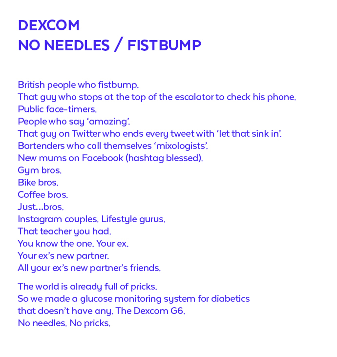 Pour aider les diabétiques à gérer leur glycémie, Dexcom a mis au point un dispositif sans aiguille et donc sans piqûre. En anglais, piqûre se dit « Pricks ». Qui veut aussi dire connards. Une campagne radio jubilatoire qui recense tous les cons qu’on peut croiser dans la vie. Ça fait du monde.